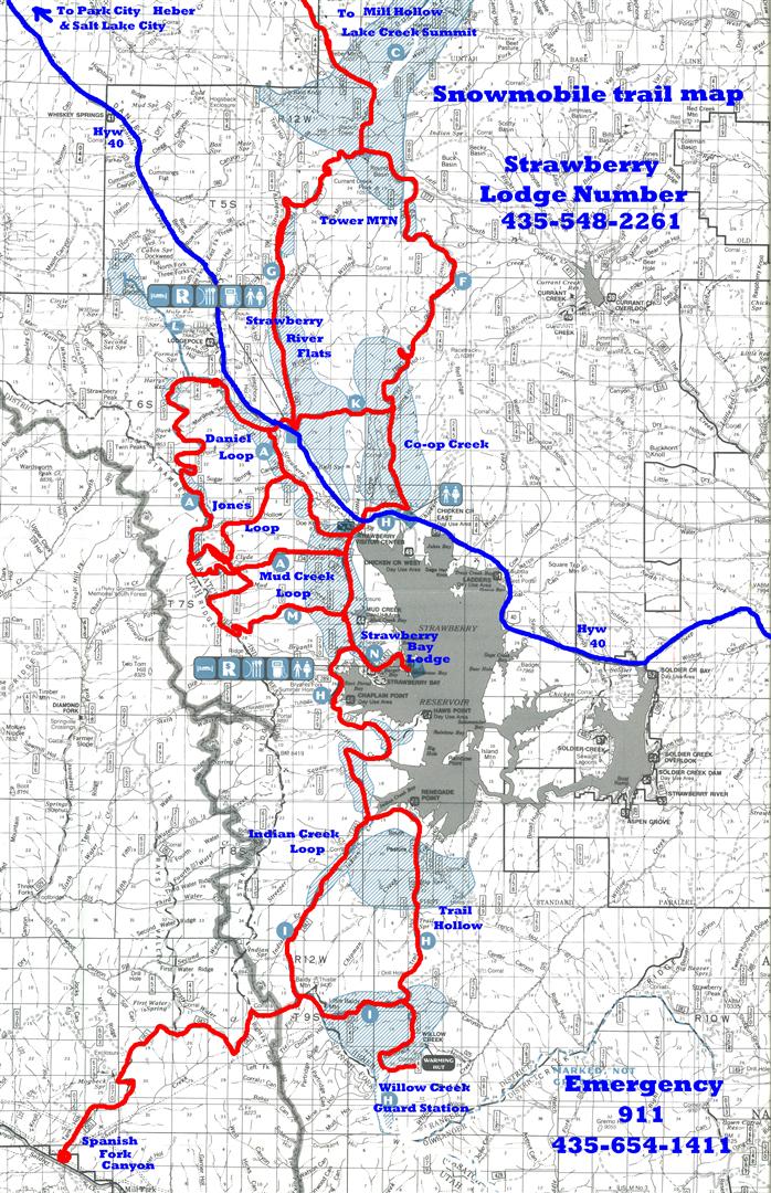 The areas around Strawberry Reservoir down through Park City are full of great places to ride snowmobiles. These areas see excellent snowfall throughout the late fall into early spring and there are many trails available that offer excellent opportunities for world class quality snowmobiling.